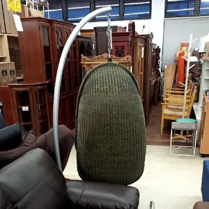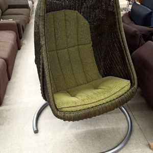 このハンギングチェアは、丸芯で編み込んだ包み込まれるようなフォルムが、安らぎの世界へ誘ってくれそうですね。